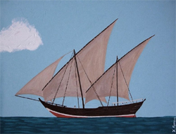 | Dau (Dhow) the generic name of a traditional sailing vessel with lateen sails used in the Red Sea and Indian Ocean. Typically sporting long thin hulls, dhows are trading vessels primarily used to carry heavy items, like fruit, fresh water or merchandise, along the coasts of the Arabian Peninsula, Pakistan, India, Bangladesh and East Africa. | ![]() |